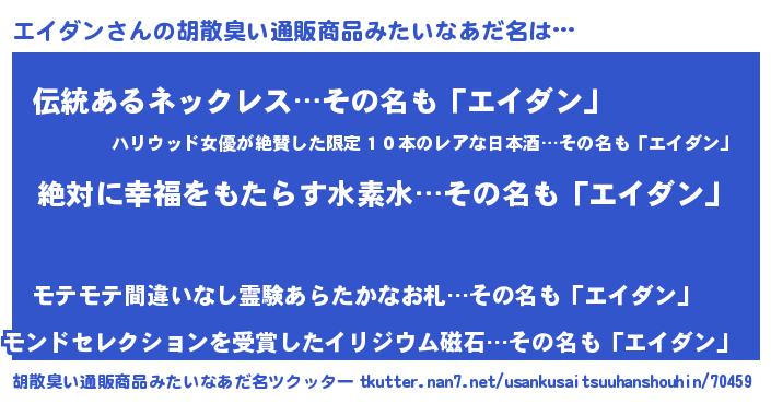| 意味不明あだ名 | 『永久保存エイダン』 |