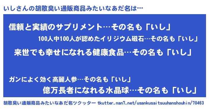 | ヘコむあだ名 | 『いし(爆)』『いしを』『いしもー』 |
