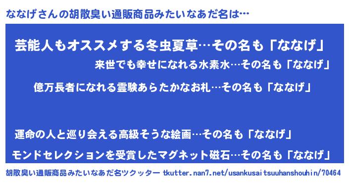 | 恥ずかしいあだ名 | 『プリティーななげ』『ナナゲデラックス』 |