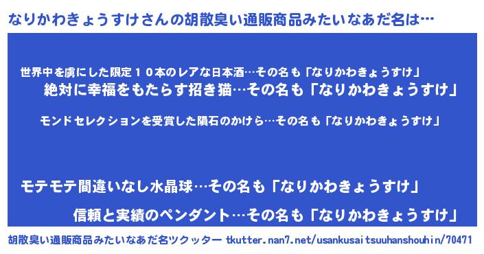 | ヘコむあだ名 | 『なりっちょ』『なりかわきょうすけ(笑)』 |