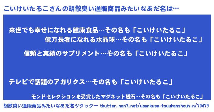 | 欧米人風あだ名 | 『アンジェラ・こいけいたるこ』 |