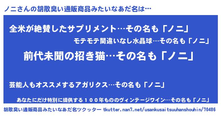 | ヘコむあだ名 | 『ノニ(小並感)』『ノニ太郎』 |