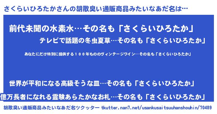 | ことわざ | 壁に耳あり障子に目あり『壁にさくらいひろたか障子にさくらいひろたか』 |