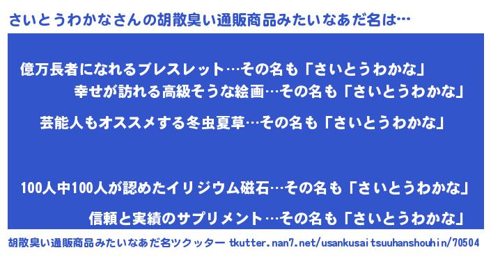 | 意味不明あだ名 | 『自称さいとうわかな』 |