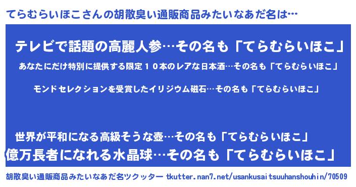 | ヘコむあだ名 | 『てらにゅー』『豆乳』『てらっ子』 |