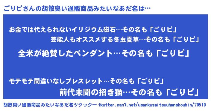 | ヘコむあだ名 | 『ごりぷりん』『ごりピ(爆)』 |