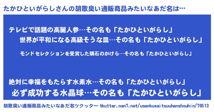 | ヒーロー風カッコイイあだ名 | 『天空の使者たかひといがらし』 |