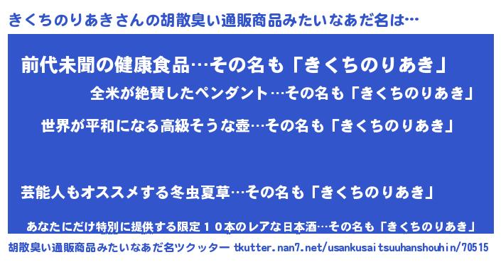 | 意味不明あだ名 | 『きくちのりあきフォーエバー』 |