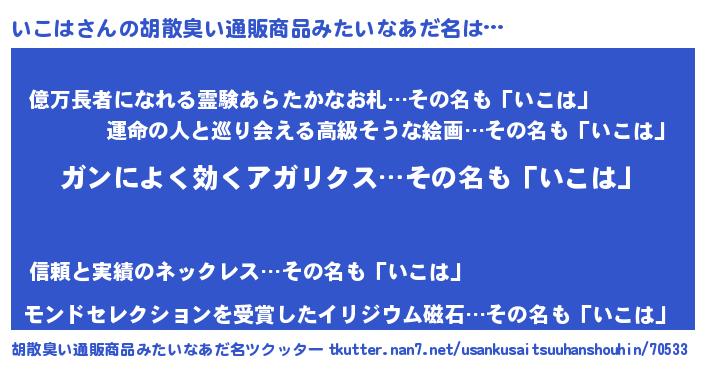 | 恥ずかしいあだ名 | 『イコハデラックス』『プリティーいこは』 |