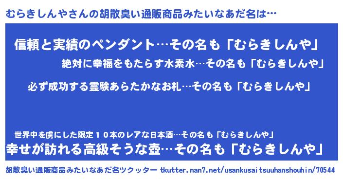 | 女子向けラノベタイトル風あだ名 | 『シンデレラむらきしんや家の靴箱館』 |