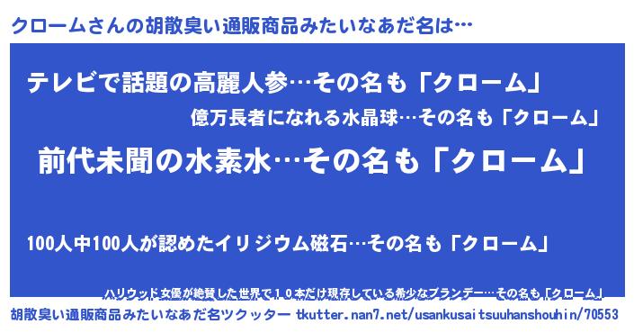| ヘコむあだ名 | 『クローム(苦笑)』『クロふぇ~』 |