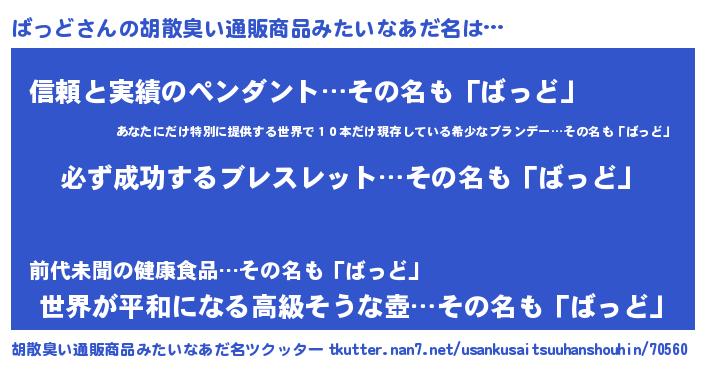 | ヘコむあだ名 | 『ばっにー』『ばっお』『酢こんぶ』 |