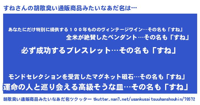 | 自動車の名前っぽいあだ名 | 『プリスネ』『ポスシェ』『ススラー』 |