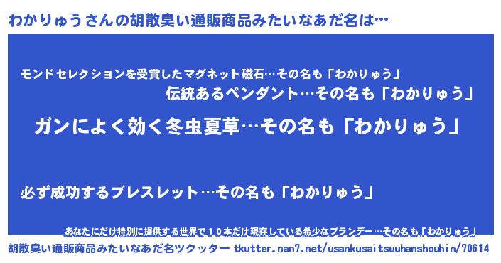 | 肩書あだ名 | 『わかりゅう総統』『わかりゅう教授』 |