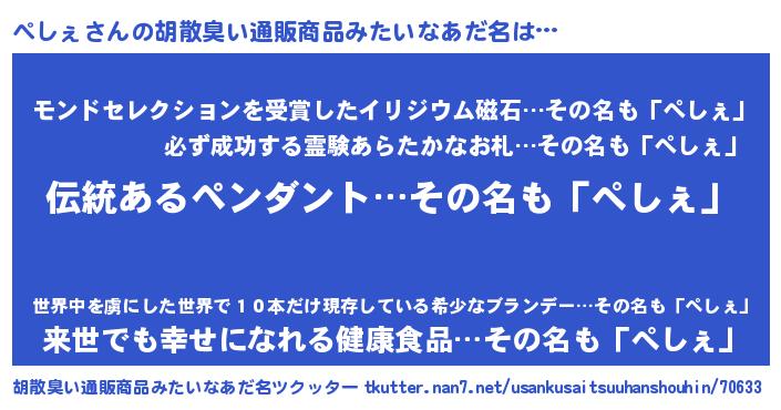 | ヘコむあだ名 | 『ぺしっちょ』『ぺしぇ(震え声)』 |