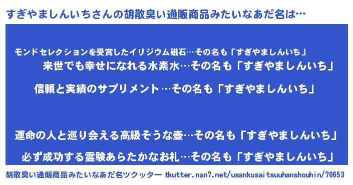 | 意味不明あだ名 | 『とにかく怪しいすぎやましんいち』 |