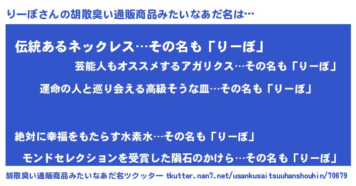 | 意味不明あだ名 | 『りーぼフォーエバー』『ニラ科りーぼ属』 |