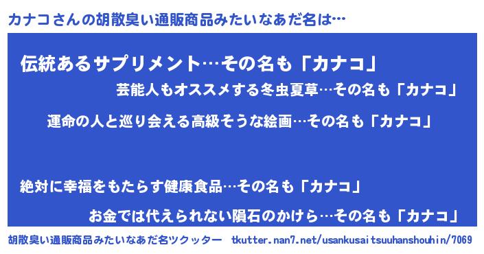 | 意味不明あだ名 | 『カナコフォーエバー』『自称カナコ』 |