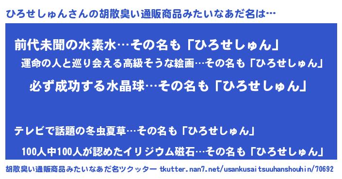 | 肩書あだ名 | 『ひろせしゅん少将』『ひろせしゅん校長』 |