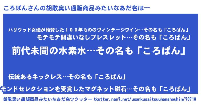 | ヒーロー風カッコイイあだ名 | 『ネオコロバン』『仮面コロダー』 |