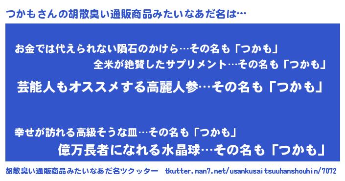 | 意味不明あだ名 | 『自称つかも』『眠気覚ましガムつかも味』 |
