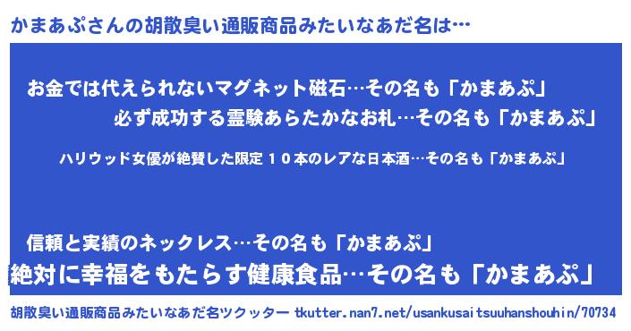 | 意味不明あだ名 | 『住所不定無職かまあぷ(47歳)』 |