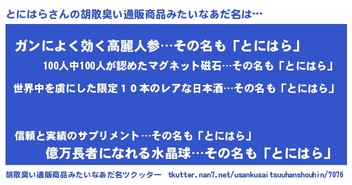 | 意味不明あだ名 | 『住所不定無職とにはら(40歳)』 |