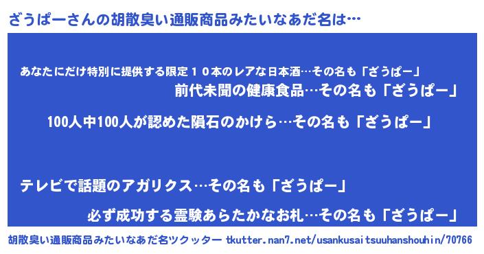 | ヘコむあだ名 | 『ざうもー』『ざうぱー(爆)』 |