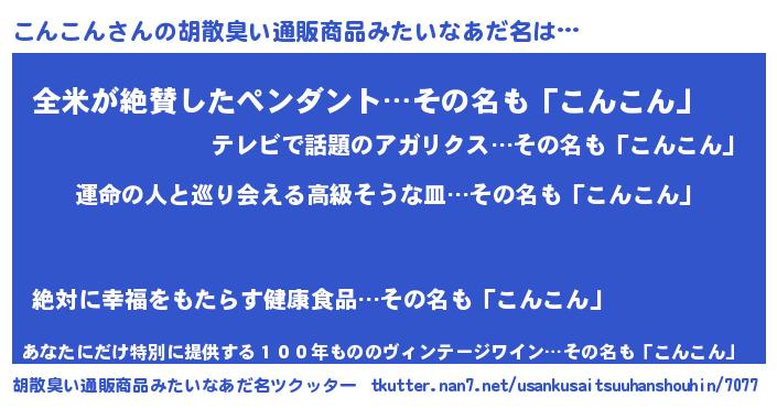 | ヒーロー風カッコイイあだ名 | 『ウルトラこんこんマン』『炎刃騎士コン』 |