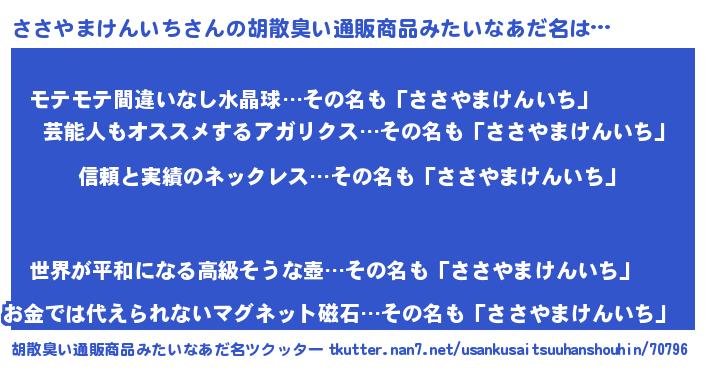 | 意味不明あだ名 | 『とにかく怪しいささやまけんいち』 |