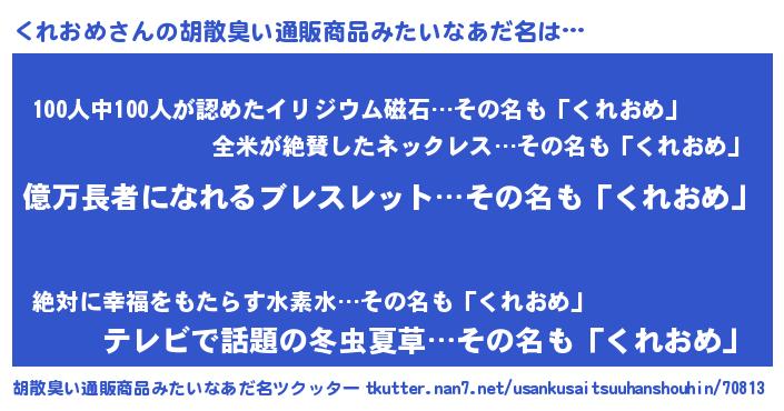 | ヘコむあだ名 | 『くれにー』『くれお』『なまこ酢』 |