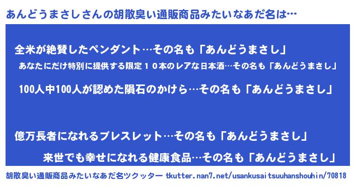 | ヘコむあだ名 | 『あんっぺ』『あんどうまさし(震え声)』 |
