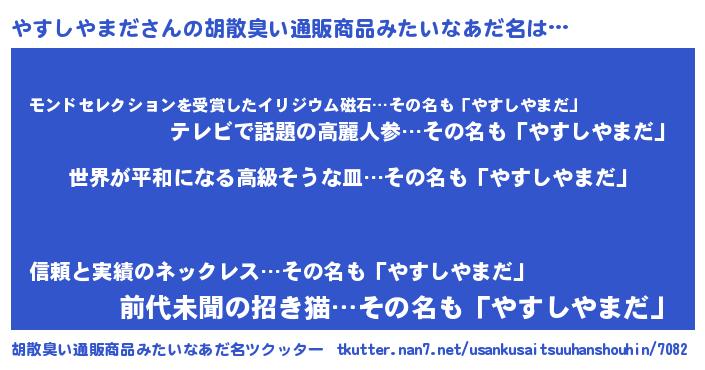 | ヘコむあだ名 | 『なまこ酢』『やすしやまだ(笑)』 |