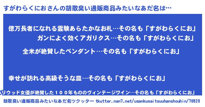 | 意味不明あだ名 | 『とにかく怪しいすがわらくにお』 |