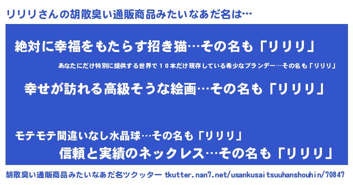 | 意味不明あだ名 | 『リリリフォーエバー』『永久保存リリリ』 |