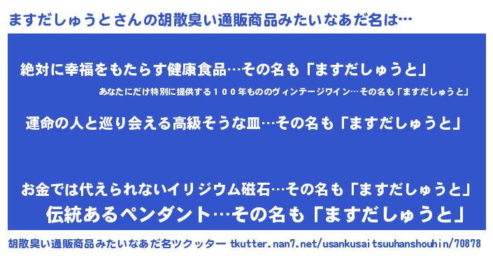 | ヘコむあだ名 | 『酢こんぶ』『ますだしゅうと(小並感)』 |