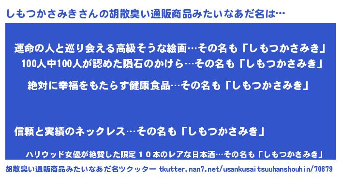| 意味不明あだ名 | 『永久保存しもつかさみき』 |