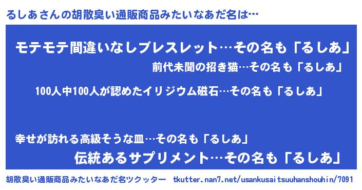 | 欧米人風あだ名 | 『ダニエルるしあ』『マイケルるしあ』 |