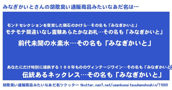 | 意味不明あだ名 | 『永久保存みなぎかいと』 |