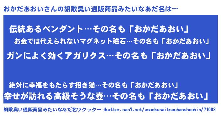 | 意味不明あだ名 | 『自称おかだあおい』 |