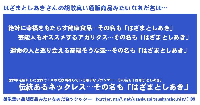 | 意味不明あだ名 | 『はざまとしあきフォーエバー』 |