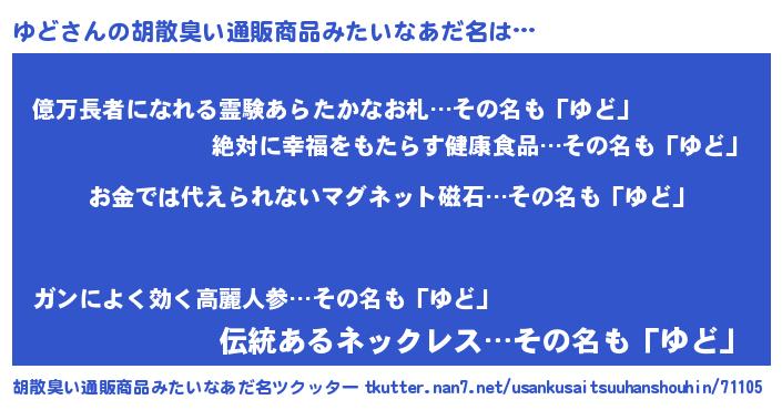 | ヘコむあだ名 | 『ゆどふぇ~』『ゆどっちょ』『豆乳』 |