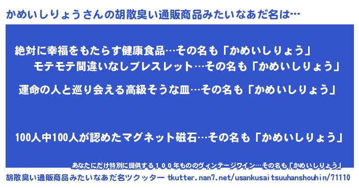 | 恥ずかしいあだ名 | 『かめっちょ』『かめちん』 |