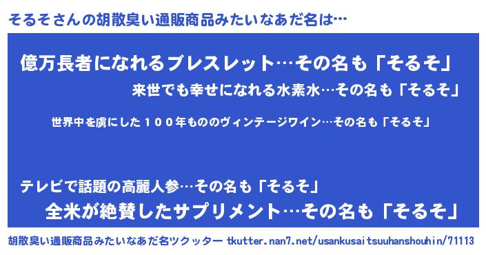 | ヘコむあだ名 | 『そるにー』『そるを』『なまこ酢』 |