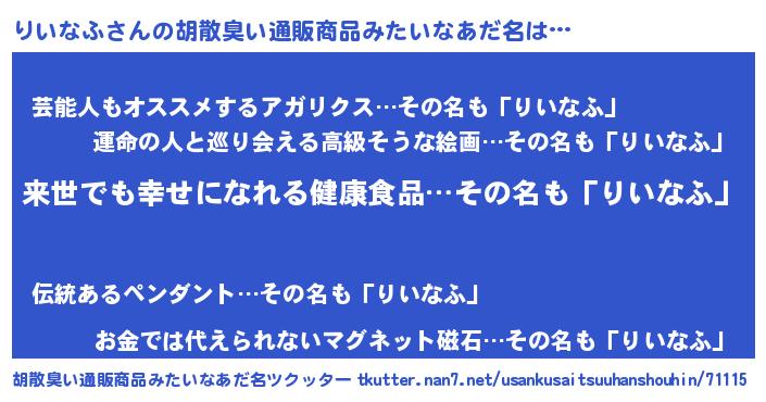 | 肩書あだ名 | 『りいなふディレクター』『りいなふ大尉』 |