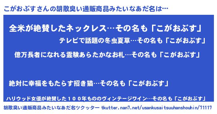こがおぶすさんの胡散臭い通販商品みたいなあだ名をツクッター!