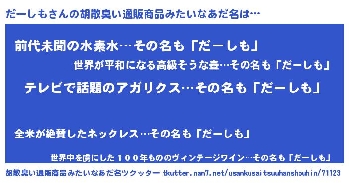 | 意味不明あだ名 | 『自称だーしも』『永久保存だーしも』 |