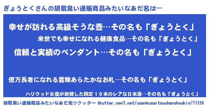 | 意味不明あだ名 | 『とにかく怪しいぎょうとく』 |