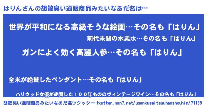 | 女子向けラノベタイトル風あだ名 | 『首の姫と首なしはりん』『闇のはりん』 |