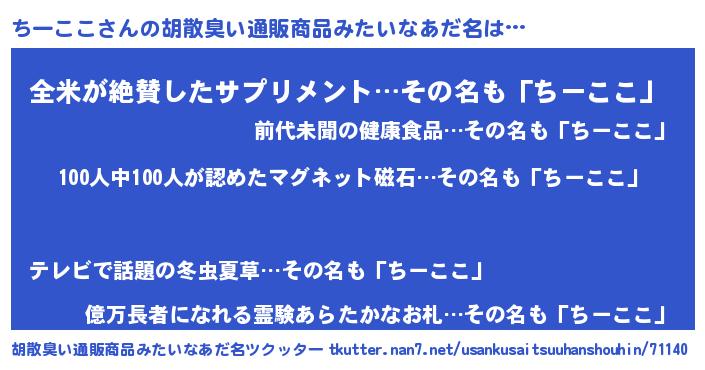 | ヒーロー風カッコイイあだ名 | 『正義の使者ちーここ』『天弓騎士チー』 |
